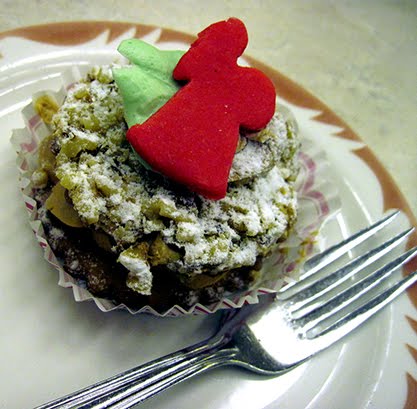 E: Oh, I was buzzing with delight too. Although they ran out of my first choice, a chocolate eclair, I settled for a cookie and cream combination known as a Nut Fancy.