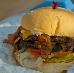 The burger patty was cooked on the spot. During my seven minute wait, I could smell the bacon and meat teasing my senses. When my order was ready, I started to glug down my cup of freshly squeezed lemonade. After being on a boat with a few salty dogs and finding mostly energy drinks in the cooler, this drink was absolutely refreshing. When I got back to the boat, the first thing I had to ask was for one of my friends, either Brydon or John, to grab a snapshot of me, perhaps crashing like the airship from long ago.