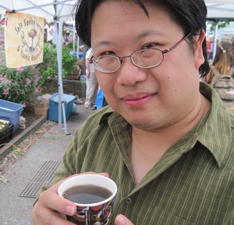 Instead, what I did grab was a bag of Salt Spring Savouries own blend of stinging nettle tea that had very nice soft overtones of mint. At their table were two varieties, mint and chai, being sold in either sampler cups to sip or as packages. After the second sip, I was sold, and I’ll have to order more. I was told that mail order is the best way to go for people who are undecided in what to get. Yes, I’m talking about James.