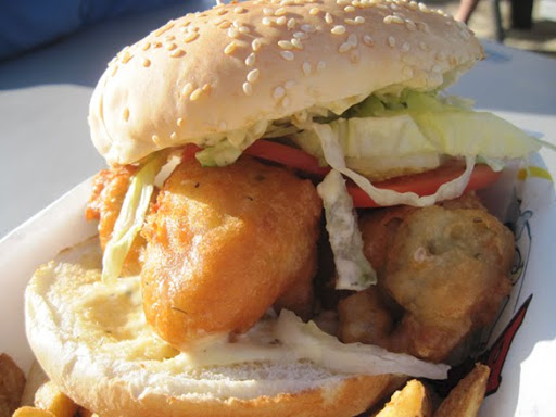 After a walk around Fisherman’s Wharf Park, hoping a time warp would take me to San Francisco, there was no luck. Instead, I finally decided to enter the long line up at Barb’s. When considering that the watch was indicating suppertime, I’m not surprised that the lull I saw earlier would soon be replaced with a twenty person pile-up. Amazingly, the wait took only 10 minutes for me to finally get to the till and a little over 12 for the order to be ready.