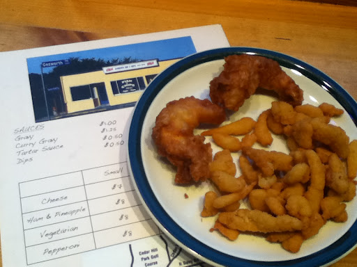 J: It wasn’t long after leaving Crown Palace / Chicken on the Run that I truly astounded Ed. I wanted to eat again. I’ve had this urge for months to revisit Gosworth Fish & Chips, my old haunt. I remember the small little shop with the cafe tables and the bright white interior. On a sunny day, the whole room would be lit and you could see the kitchen as you waited for a meal. Many times I took my helping of cod and chips home in brown paper or newsprint.