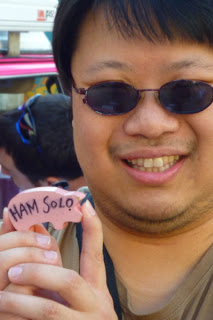 J: It appears my tastes in women caused Ed’s rolling eyes to switch over to automatic pilot for the duration of our trip. I’ll admit I was observing Asian women (including those two from traffic division on Wednesday night) but I have eyes for all women. But I digress. I only wanted to sit in the square and enjoy lunch served from a street vendor like any other Vancouverite. Pig on the Street has their own version of “take a number” but with little wooden pigs blessed with corny (or should I say hammy) names. I had a little trouble with my order but I lay partial blame on the name of my wooden pig. Apparently, there is no love lost nor tear shed for David Hasselhog.