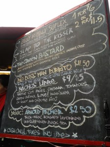 I tried the Big Boss Man Burrito ($11.50) and had to get an explanation of how their chalk-board menu works. You get to choose one of the three fillings that are listed on top of the picture. The foundation of the burrito’s flavor can be found in the garlic rice and the scent is a delight. The pulled pork is the best I’ve had in ages. The overall taste can easily put The Pig’s to shame. The pickling of the veggies brings out the flavour of the entire wrap and the hot sauce certainly gives the meal zest.