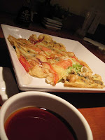 But at least the seafood pancake, which I swear is an okonomiyaki, was more than enough to satisfy our hungry appetites! We each had one, and the light crispiness was enough to get me salivating for more. There was a mix of crab, green onions and squid – to name a few – all lightly cooked up on a soft grilled up batter.