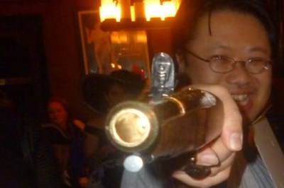 E: And I wondered where the bottles of rum were and thankfully they were behind the front desk. After we swaggered in like two big pigs in a poke awaiting slaughter than actual pirates, I wish I had dressed up for this event so I could’ve blended in more. At least I have clothes to make me look suave, so I’ll be looking forward to James Bond night, if that particular event happens.