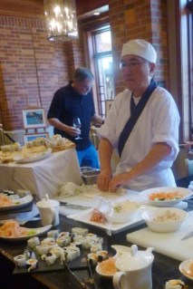 And I was pleased that a mix of vegetarian and raw fish rolls were offered. And the cooks behind the table were showing how rolls were made. They didn’t look like they were there to answer questions about the finer points of sushi dining to curious connoisseurs. That would’ve helped make the introduction to this foodie film fest spectacular.