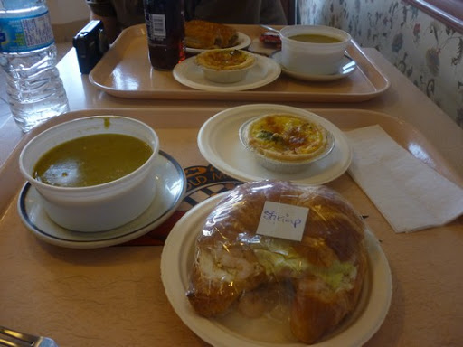 J: My shrimp croissant was as fresh as it could get. The lettuce was crisp and the small shrimp tasted like they had been caught only a few hours pervious. And I was loving the green pea soup. It had a nice consistency and they used the right amount of pepper to compliment the taste.