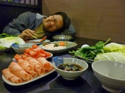 J: No, it was the beef that was quite tasty. We never did ask where the beef was sourced from but it made for a welcome bite. Let it be known though, that some of the ingredients the servers may lay down in front of you has a tendency to shrink when cooked in boiling water. What Ed and I ordered may have looked like we were eating like kings but you would be surprised how much was left to fill our bowls. I guess you could call it an economy meal.