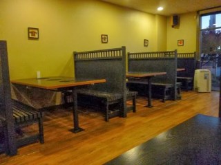 J: Young Young is one of those Asian restaurants in the University corridor of Gordon Head, known as Cedar Hill X Road. It is not only a road frequented by Camosun College Lansdowne campus students but also the University of Victoria and the St. Michael’s University students as well. What is interesting is is this is a restaurant frequented by Asians, much like Kuma Noodle across the road. And why not, the restaurant has unique seating depending on what your eating arrangements will be. You have the wooden booths for hot-pot (and a special booth available for a large hot-pot party), the cushioned booths for regular eating, tables for two with mod looking chairs and there is a cozy corner for a large group to relax.