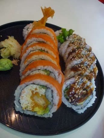E: When James goes trinket shopping at the charity shops, I go food spotting, and instead of going down a straight line, we took the side-streets of Sidney to reach one particular destination. We never got there since my insatiable appetite for sushi got in the way. I yam what I am when it comes to wanting to try fresh raw fish.