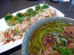 Also, If you buy the chef a drink, sometimes he may make up a special roll for you. But this piece of knowledge does not always happen. Depending on the restaurant, the chef is not allowed to drink. To complement my meal, I had the Beef Udon bowl, and it was enjoyable. While I’m used to white udon noodle, I was intrigued at the changing of the guard–the type of noodles used were green in colour!