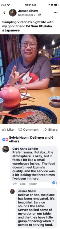 I’m always in that mode to report on anything which I believe is worthy to mention. When considering Futaba is one of those long running operations in Victoria, BC, Mr. Shaw’s thoughts on some places not able to last and the reasoning in why he decided to depart holds no ground. He just wants to quit because it’s an easy way out for him to not commit to this or any other project we may have together anymore, his work and personal life notwithstanding. He can take to other forums, which is fine; to which he did post on Facebook his thoughts (see image on the right).