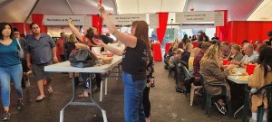 At this event, many Alaskan Crabs have been boiled and steamed to absolute tasty perfection. They’re not the prime choices (I’m betting the fishermen pulled those bigger ones out for restaurants to bid upon) and what we get are the runts of the litter. That is, they are the crustaceans that just meet the minimum legal size requirements for pulling out of the sea, and when considering there are a lot of tummies to fill, this operation better not run out!